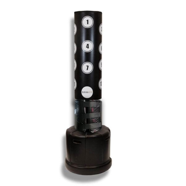 Drako Target Free Stand Bag w Collar – Non-adjustable, 72” tall, foam collar and marked targets for precise striking drills.