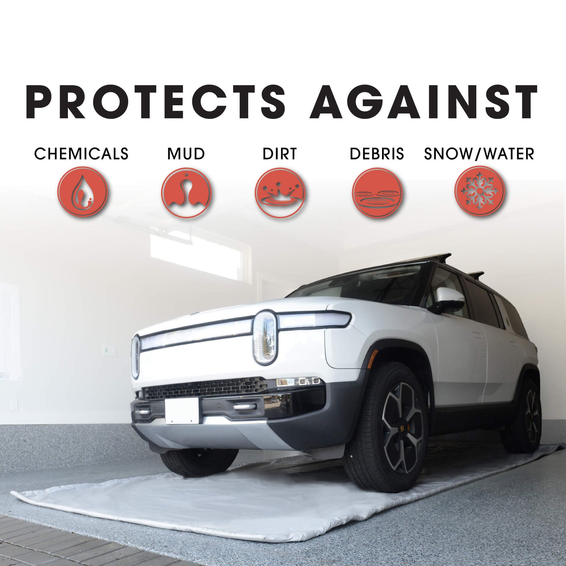 Garage floor mats like the Floor Defender are designed to catch snow, mud, salt, oil, and other messes that vehicles bring into the garage. They help protect your garage floor from damage, reduce slip hazards, and keep the area clean.