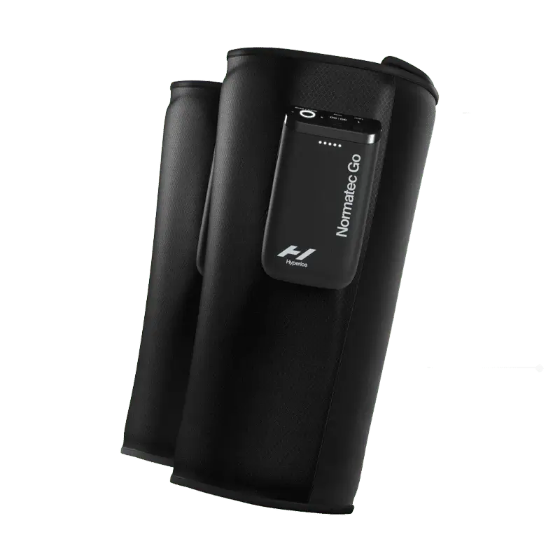 The Normatec Go by Hyperice delivers targeted massage for fresh legs on-the-go. Backed by the same science that powers the original Normatec system, the Normatec Go is completely portable and delivers dynamic air compression to the calf muscles to increase circulation and reduce pain and tension in the legs.