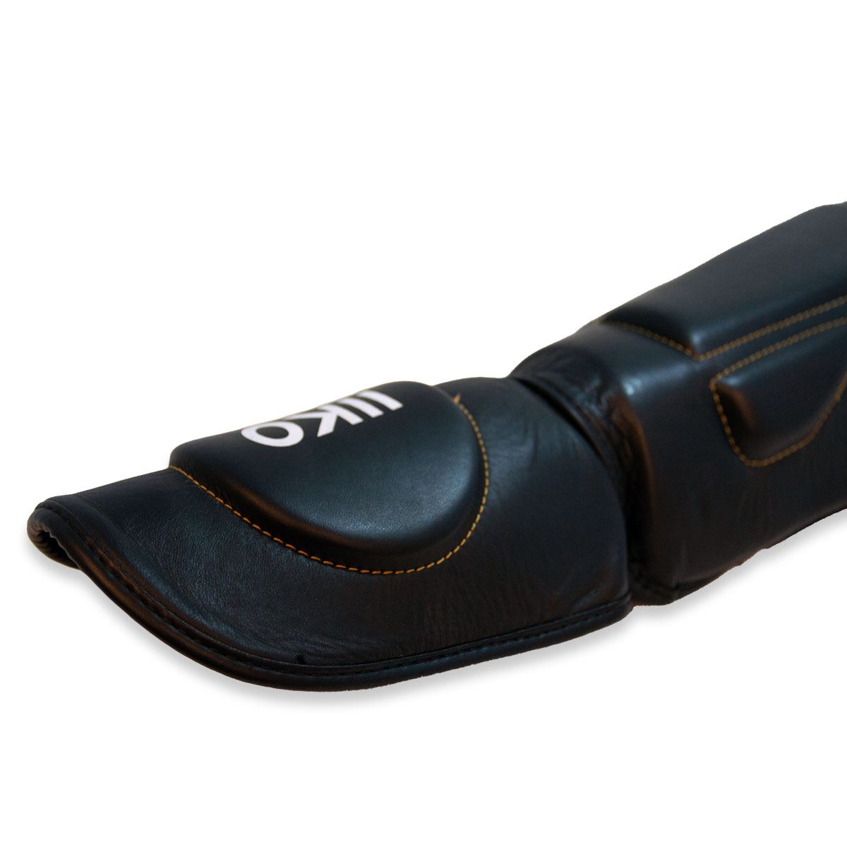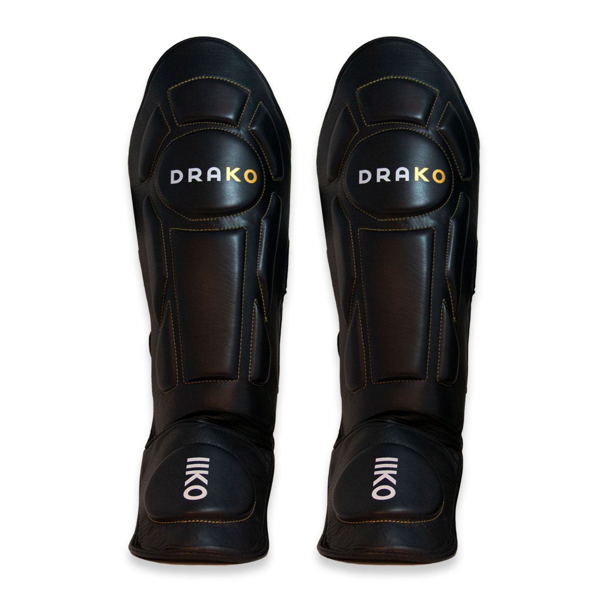 Engineered for elite athletes, the Drako Wargold Shin Insteps boast a matte genuine leather outer shell and shock-absorbing gel inserts for unmatched protection and impact control. The design ensures a tight, secure fit that stays firmly in place even during the most intense sparring sessions.