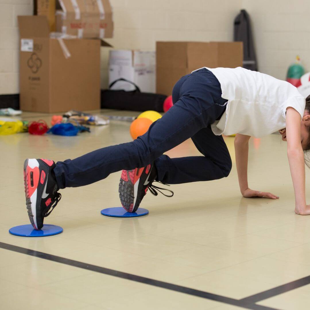 Use the discs under your hands, feet, or knees to perform a wide range of exercises, including: