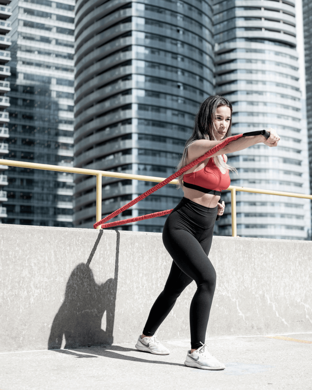 Durable Design: Premium-grade resistance tubing protected by a red polypropylene covering, paired with industrial-strength plastic handles for maximum safety and longevity.