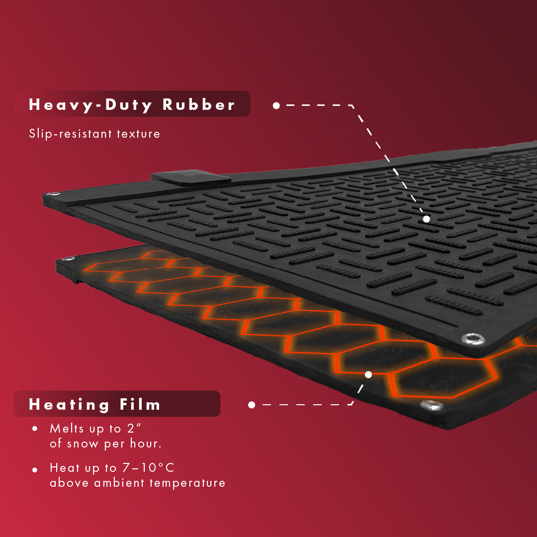 • Melts up to 2” of snow per hour, supports light vehicle traffic on driveways and walkways