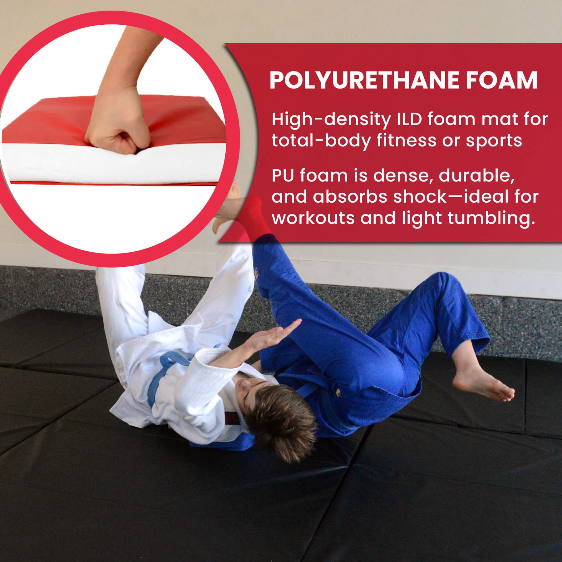 PU foam is a dense and durable foam that provides excellent shock absorption and cushioning, making it suitable for general workouts as well as some falling and tumbling.